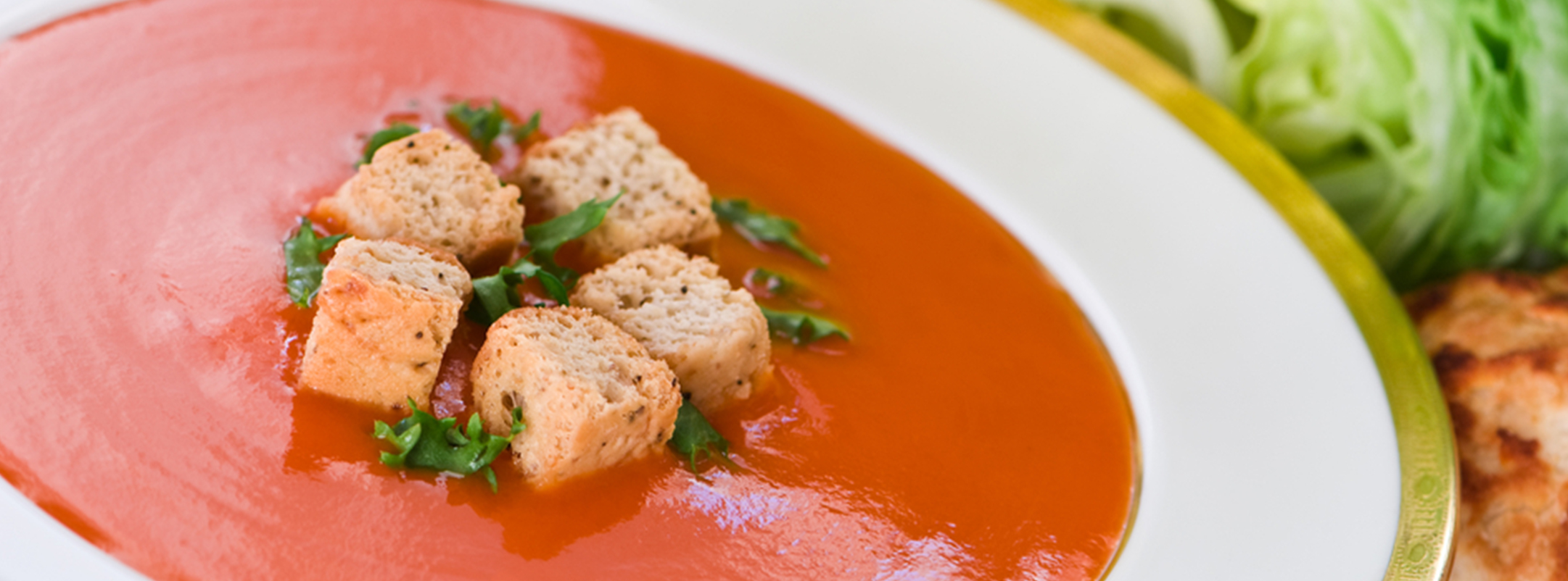 Measure salsa ingredients into a mixing bowl and toss to combine thoroughly. Divide and spoon in center of soups. Drizzle 1 tablespoon of crème fraiche around the salsa and serve immediately.
